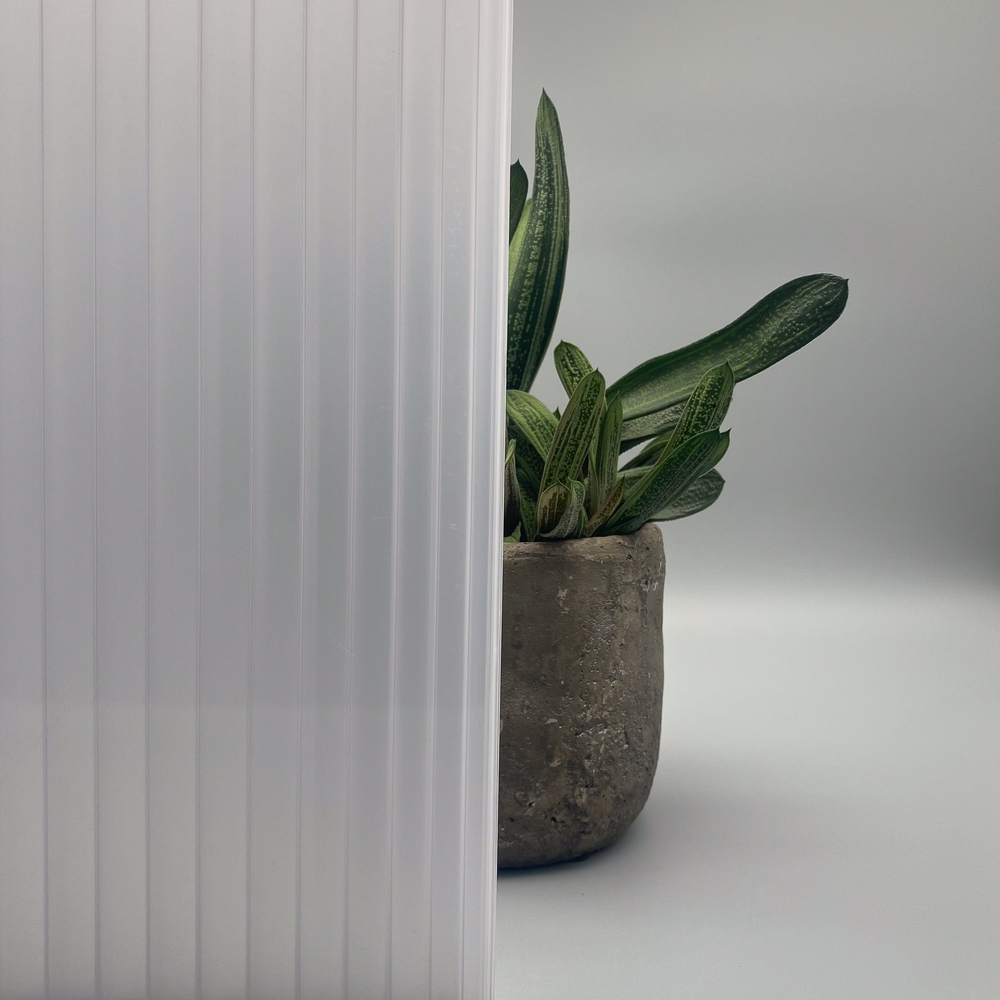 In opal besitzt diese Stegplatte einen optimalen Sichtschutz und eine Lichtdurchlässigkeit von 55%. Zudem bietet sie eine gute Wärmedämmung und eine exzellente Witterungsbeständigkeit.
