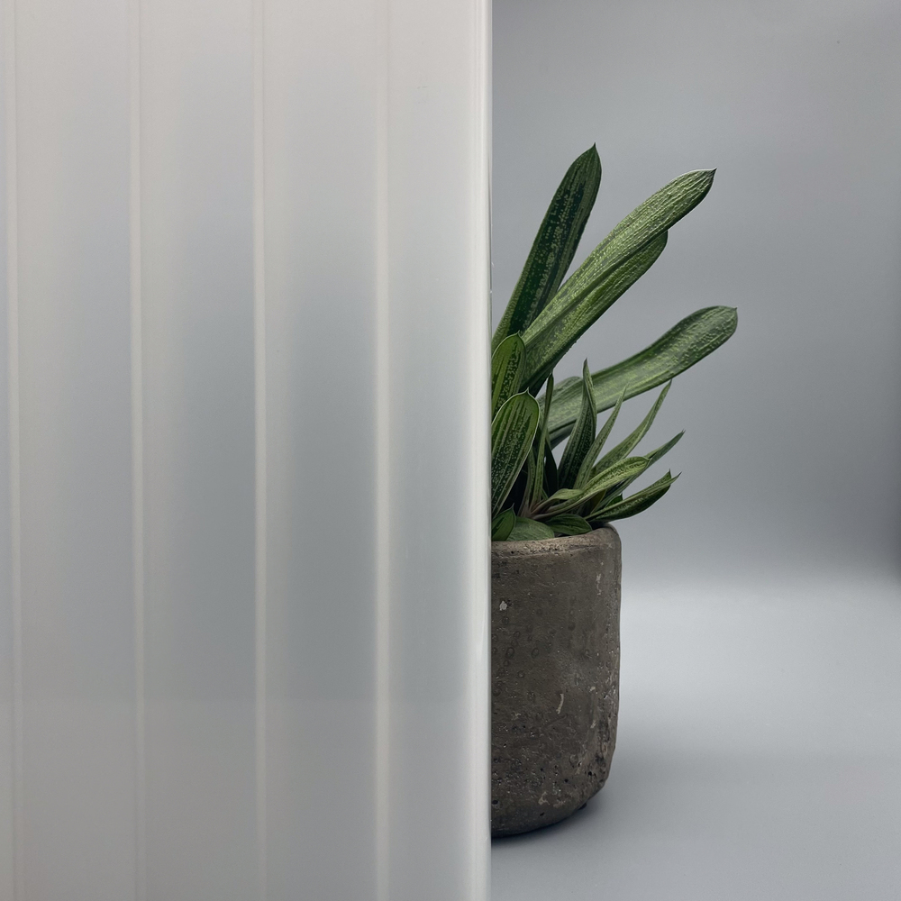 In opal besitzt diese Stegplatte trotz Ihrer Stärke von 32mm und der Blickdichtigkeit noch eine Lichtdurchlässigkeit von 45%.