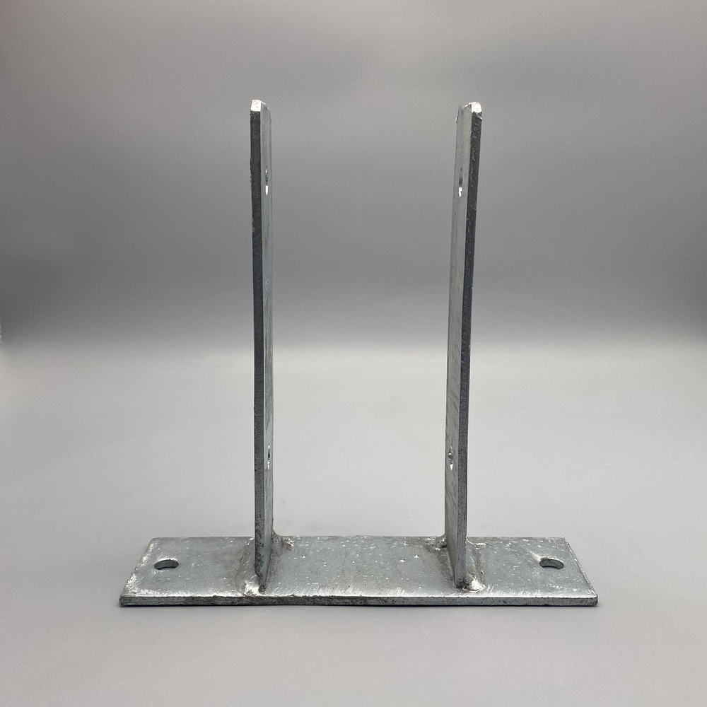 Verzinkter Pfostenanker zum aufschrauben oder aufdübeln für 120mm breite Pfosten. Dazu hat der Pfostenanker zwei Löcher, mit einem Durchmesser von 10,5 mm, an der Grundplatte. Zur Befestigung der Pfosten hat jede Seite 2 Löcher mit einem Durchmesser von 10,5 mm.