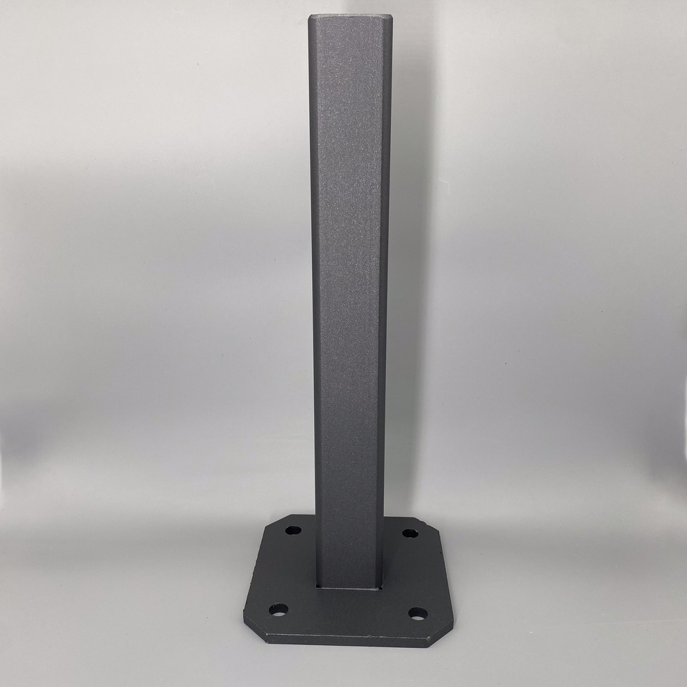 Diese eckige Aufsatz-Konsole dient zur Befestigung der Pfosten. Der Pfosten wird einfach von oben aufgesteckt und von außen verschraubt.