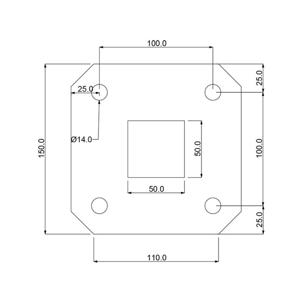 Die 8 mm starke Anschraubplatte der Aufsatz-Konsole bietet 4 Anschraubpunkte.