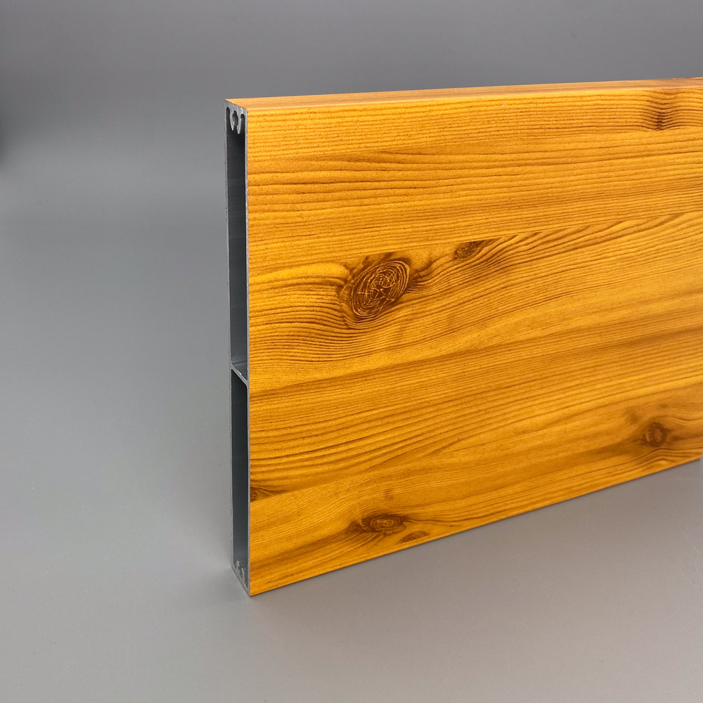 Die Holzoptik wird nach der Pulverbeschichtung in zwei Verfahren eingebrannt. Somit wird eine verblüffend echte Holzoptik erzielt.