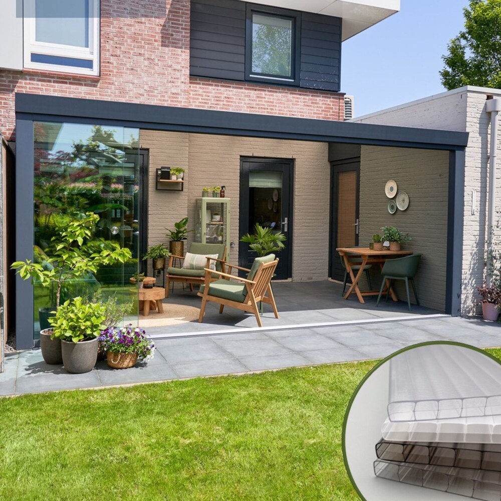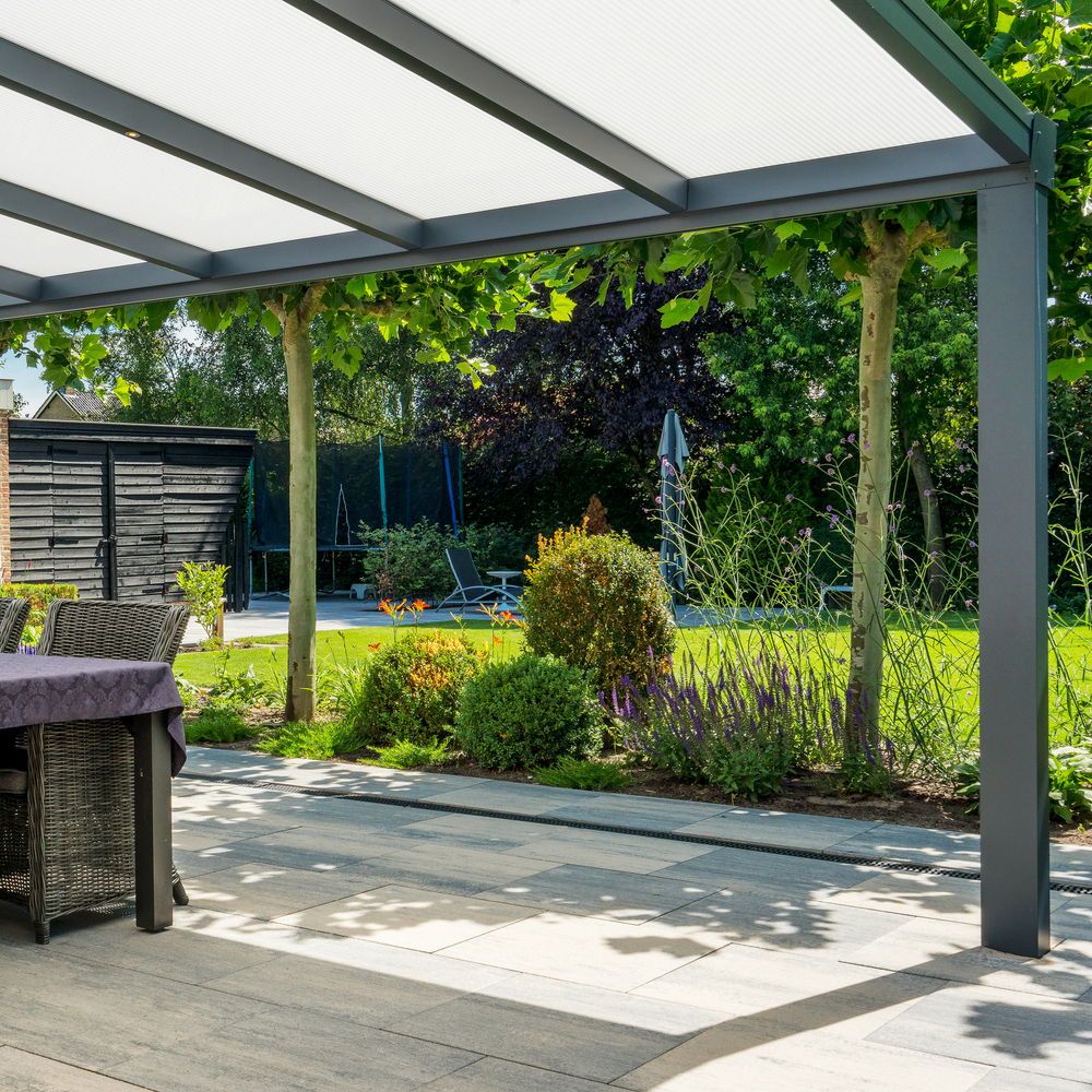 Giallo Robuste Terrassenüberdachung aus Aluminium mit Stegplatten