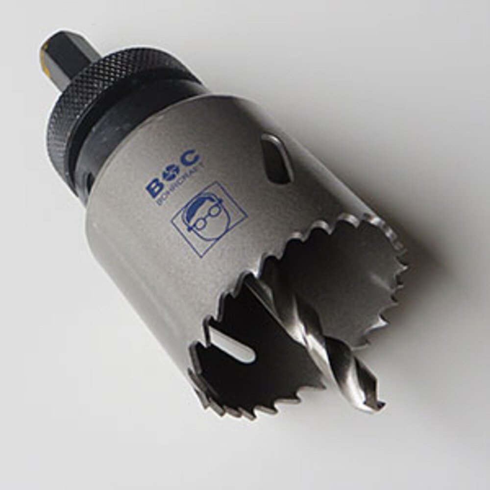 Lochbohrer mit einem Durchmesser von 46mm. Der Lochbohrer wird benötigt um ein passendes Loch für den Ablaufstutzen in die Dachrinne zu bohren.