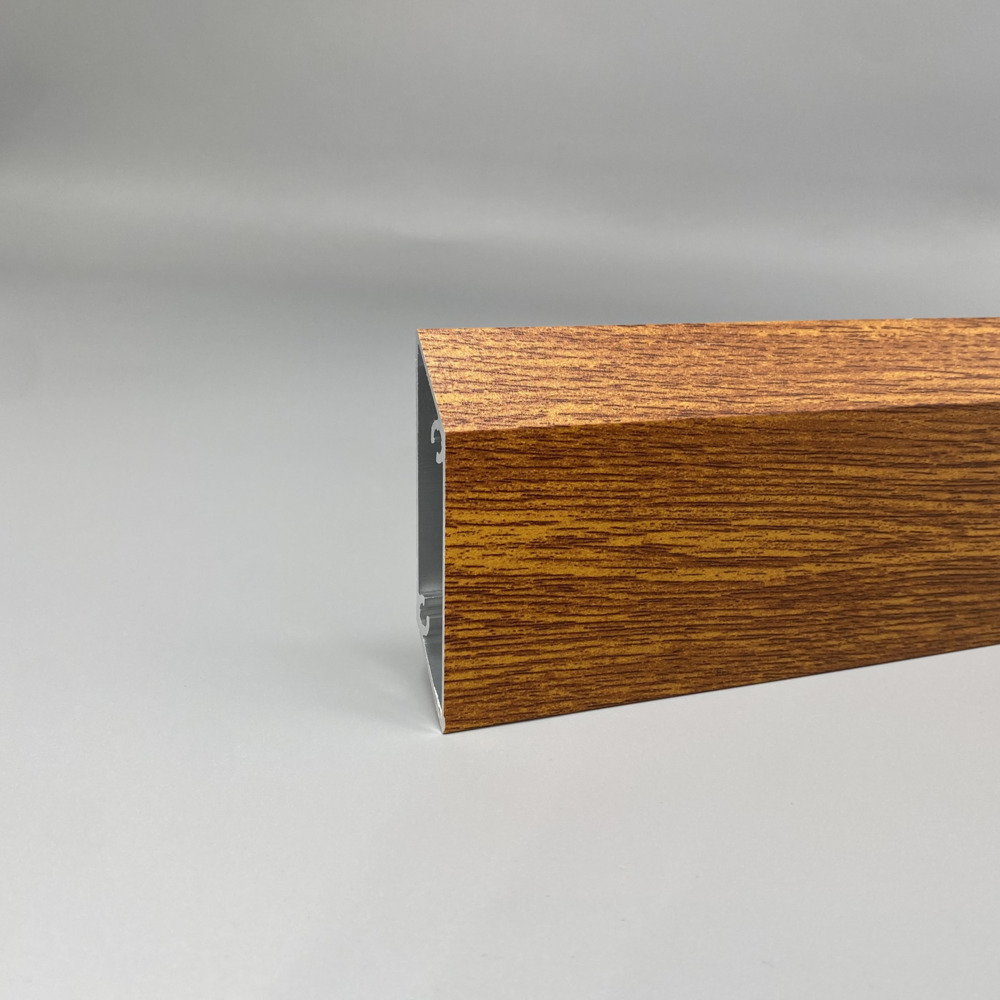 Rhombusprofile aus Aluminium mit eingebrannter Holzoptik Golden Oak in 53 mm breite.