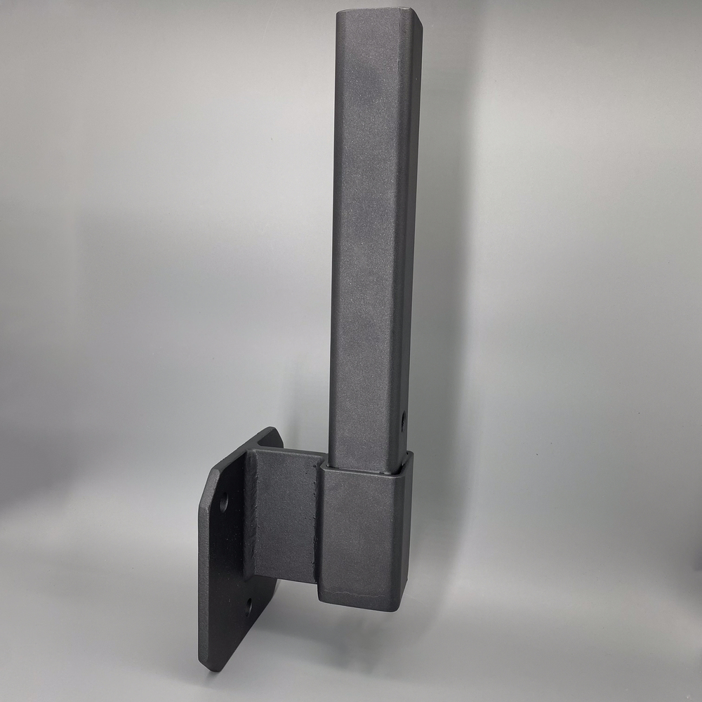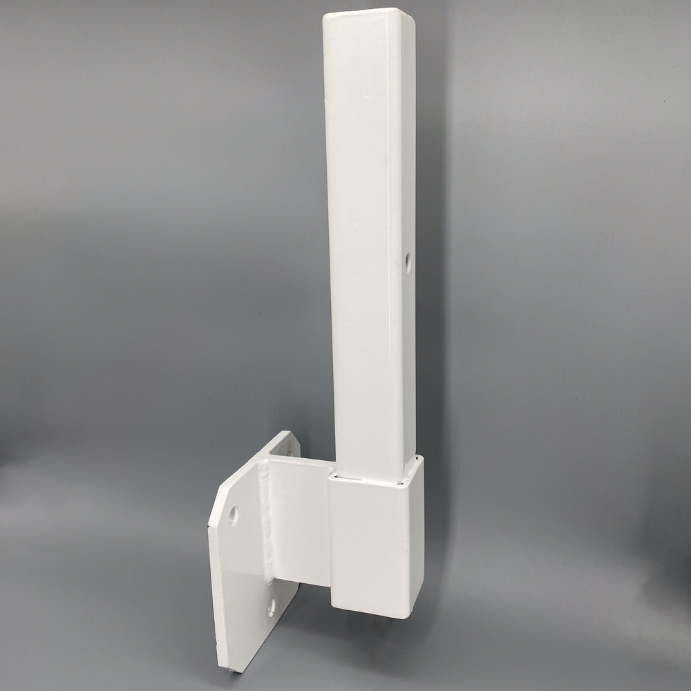 Diese eckige Vorsatz-Konsole dient zur Befestigung der Pfosten. Mit der Vorsatz-Konsole kann die Brüstung von vorne am Balkon angebracht werden und somit noch ein wenig extra Platz herausgeholt werden. Der Pfosten wird einfach von oben aufgesteckt und von außen verschraubt.